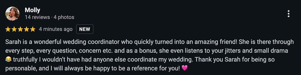 Event planning has become my passion for almost a decade now and I'm grateful that I get to call this wonderful industry my career. Getting to be a small piece in someone's special event is such an honor. I love getting to help make their event as unique as they are.